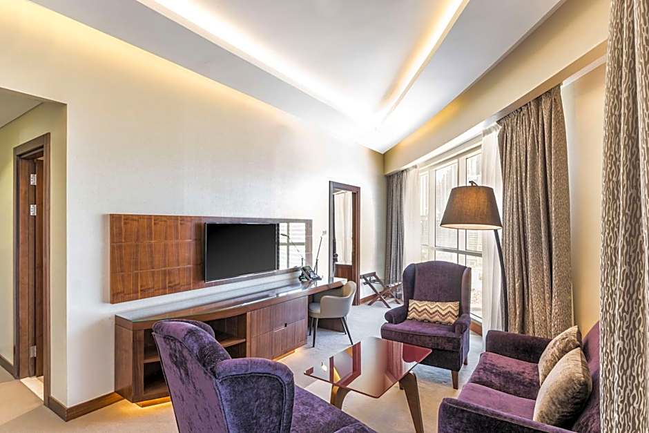 These suites feature separate sleeping and living areas. With a well-equipped bathroom with a rain shower, bathrobe and slippers, the Junior Suites let you to unwind and enjoy your stay. Enjoy exclusive access to the exclusive Business Class Lounge where snacks and refreshments are waiting for you. This double room features, two flat-screen televisions and free WiFi, so everyone can relax with their preferred entertainment, bathrobe, soundproofing and air conditioning.